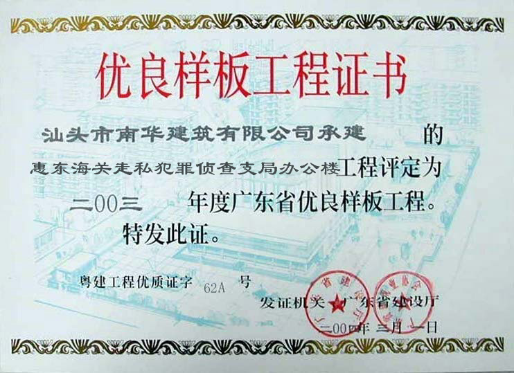 工程樣板證書