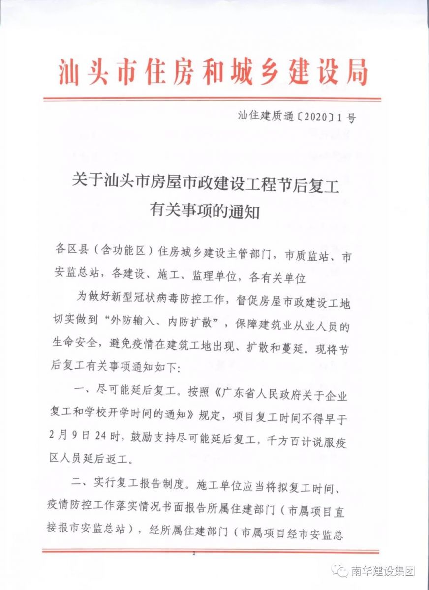關于汕頭市房屋市政建設工程節(jié)后復工有關事項的通知