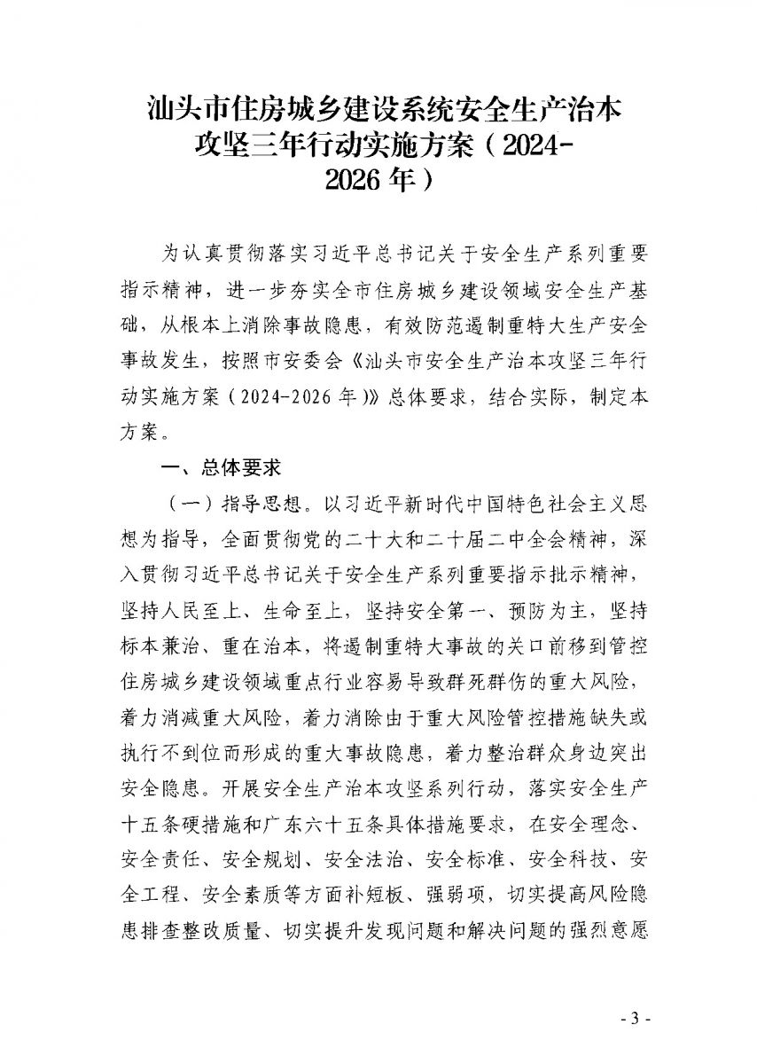 汕頭市住房城鄉(xiāng)建設(shè)系統(tǒng)安全生產(chǎn)治本攻堅三年行動實施方案(2024-2026年)