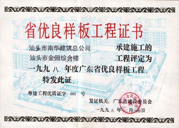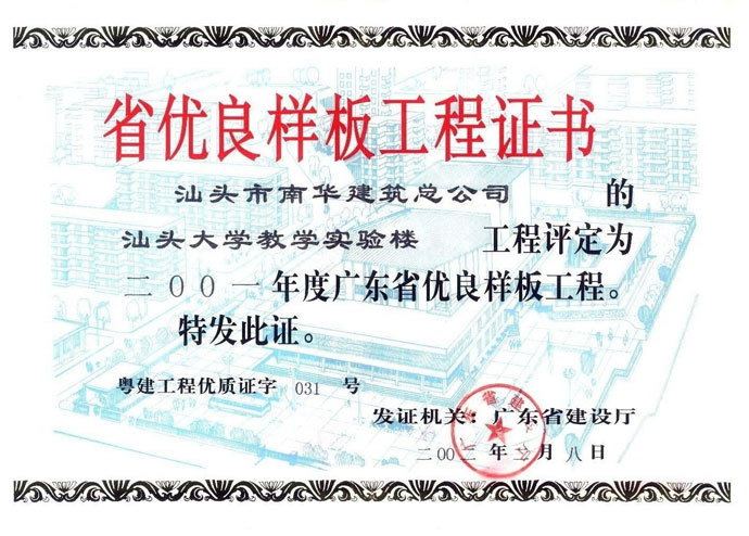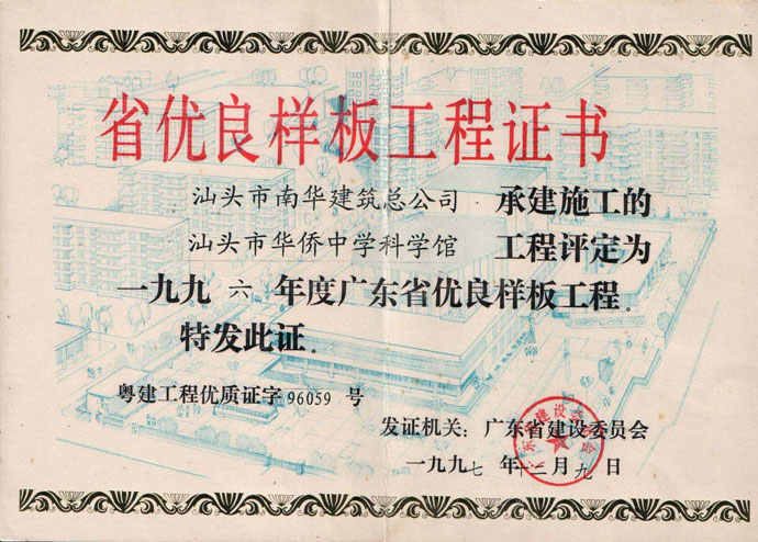 汕頭大學(xué)教學(xué)實驗樓 省優(yōu)良證書